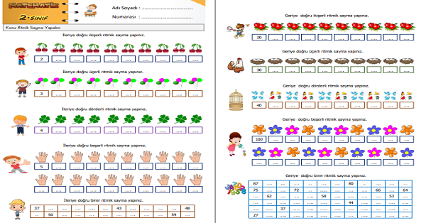 2.Sınıf Matematik İleriye ve Geriye Ritmik Sayalım Etkinliği 1