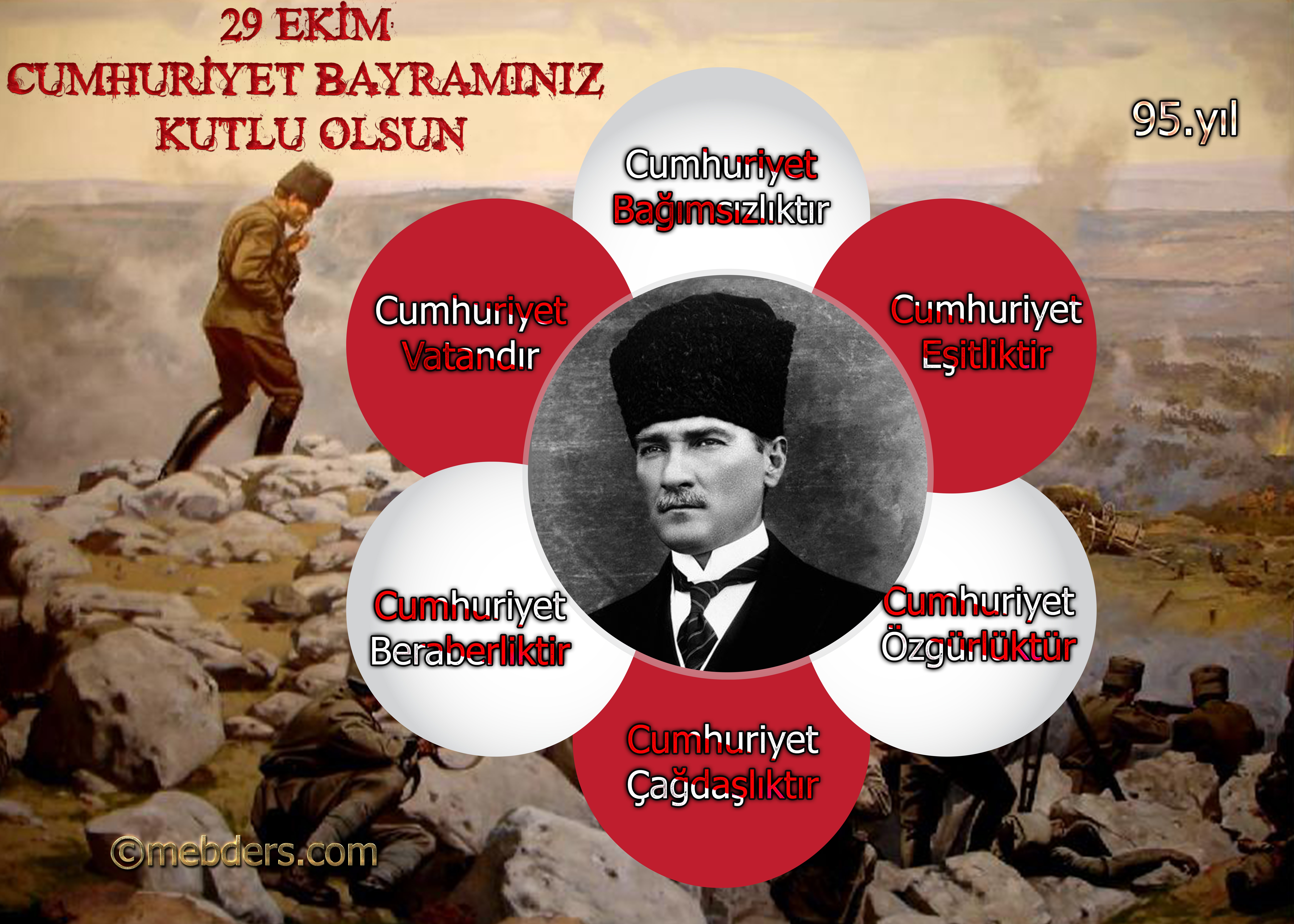 95.Yıl Cumhuriyet Panosu posteridir. 50x70cm boyutunda tasarlanmıştır. ©mebders.com logolu kullanımı ücretsizdir ve orjinal boyutlu poster için dosyayı indirebilirsiniz. Logo kaldırma ücreti 30tl dir, logosuz kullanmak istiyorsanız iletişim adresimizden irtibata geçebilirsiniz. Cumhuriyet bayramınız kutlu olsun.. info(@)mebders.com