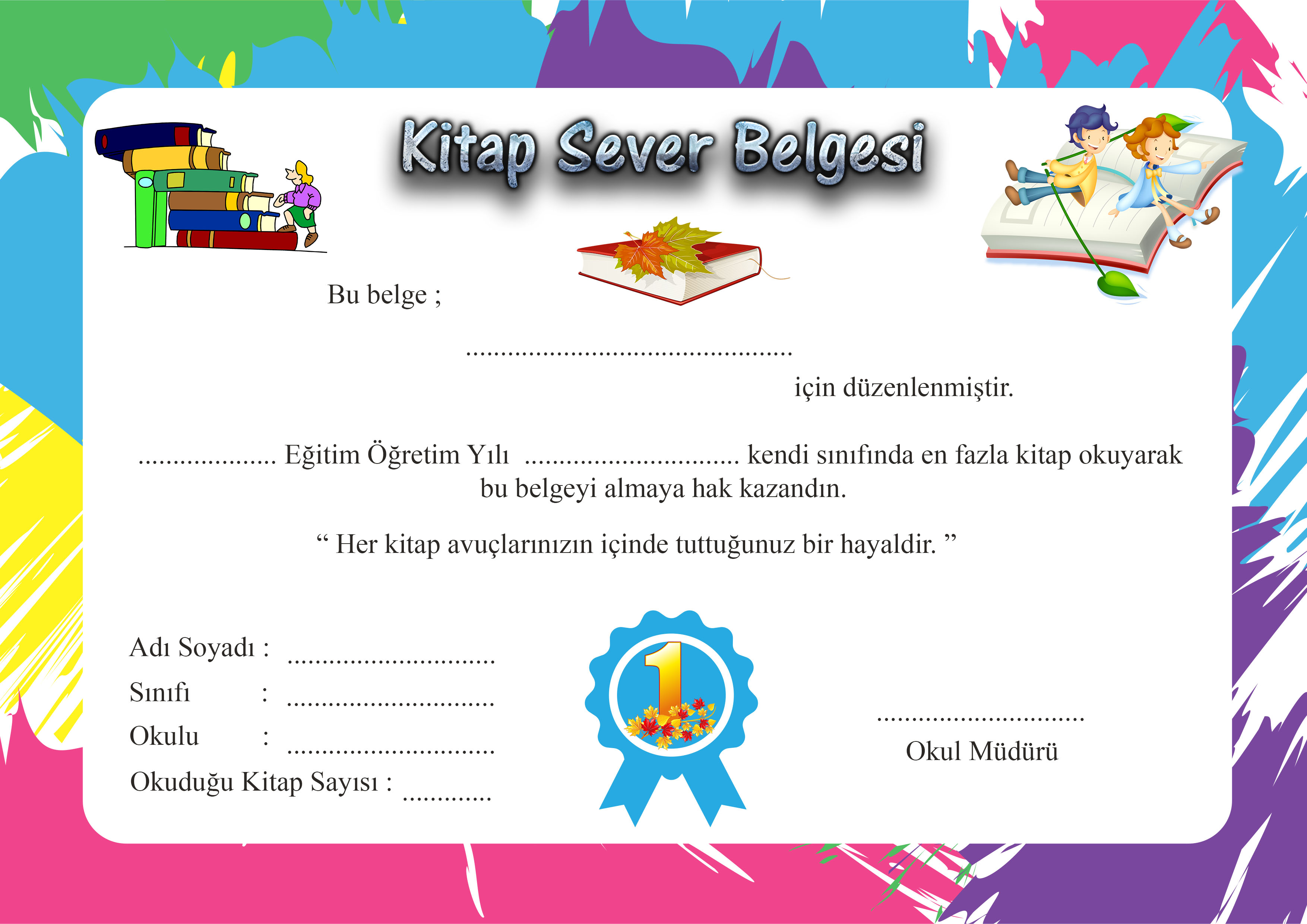 Kitap sever belgesidir. A4 resim olarak hazırlanmıştır. Basit bir resim düzenleme programında gerekli bilgileri girebilirsiniz. Orjinal boyut için dosyayı indirebilirsiniz.