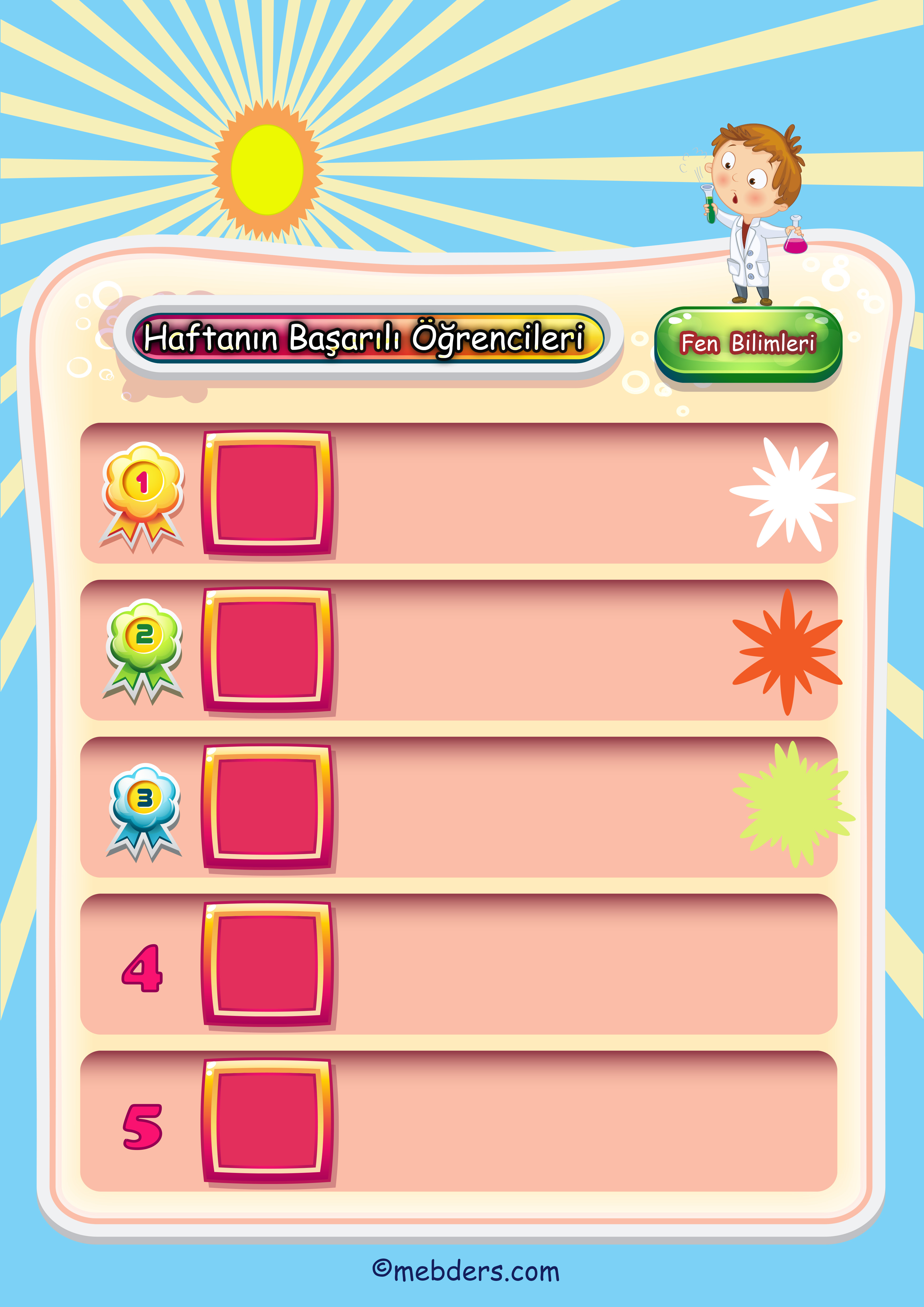 Fen Bilimleri Haftanın Başarılı Öğrencileri Şablonudur. A3 olarak düzenlenmiştir. Diğer dersler için de paylaşılmıştır. A3 orjinal boyut için dosyayı indirebilirsiniz.