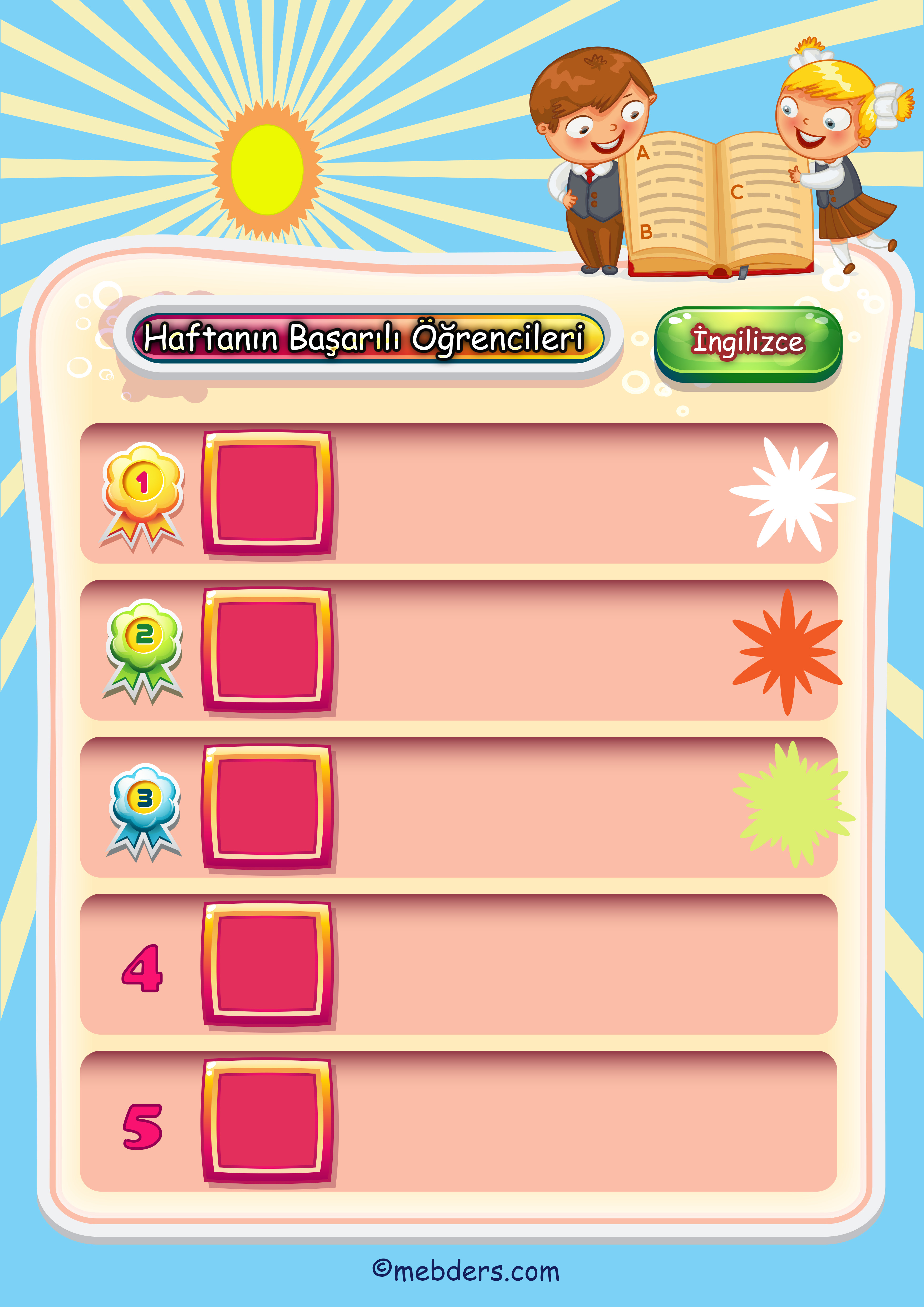 İngilizce Haftanın Başarılı Öğrencileri Şablonudur. A3 olarak düzenlenmiştir. Diğer dersler için de paylaşılmıştır. A3 orjinal boyut için dosyayı indirebilirsiniz.