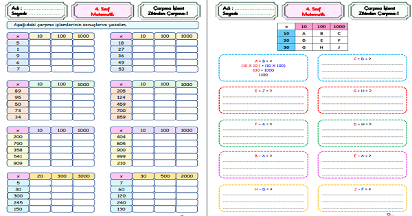 4.Sınıf Matematik Zihinden Çarpma İşlemi