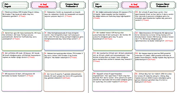 4.Sınıf Matematik Çarpma İşlemi Problemleri-3