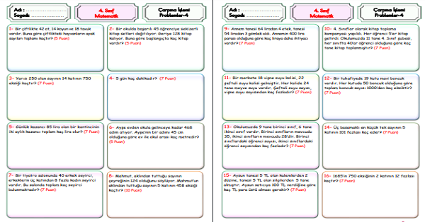 4.Sınıf Matematik Çarpma İşlemi Problemleri-4
