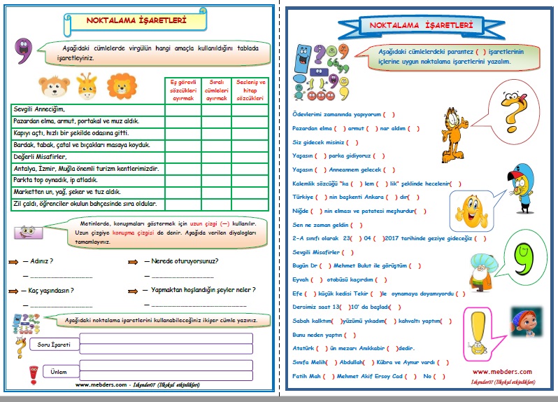 2.Sınıf Türkçe Noktalama İşaretleri Etkinlik Çalışması (4 Sayfa)