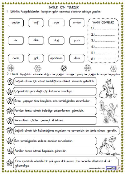 2. Sınıf Hayat Bilgisi Sağlığımız İçin Etkinliği