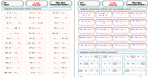4.Sınıf Matematik Matematiksel İfadelerin Eşitliği-1