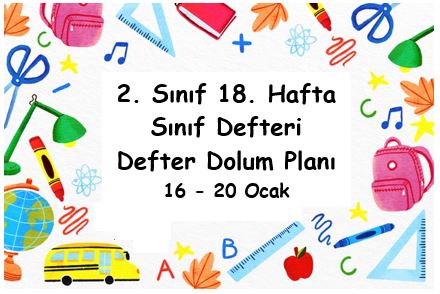 2022-2023 Eğitim Öğretim Yılı 2. Sınıf 18. Hafta (16 - 20 Ocak) Defter Dolum Planı