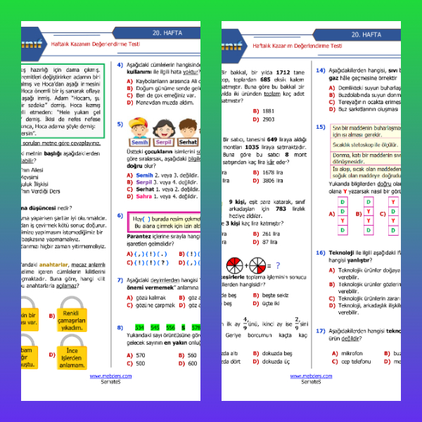 4. Sınıf Haftalık Değerlendirme Testi - 20. Hafta