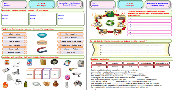 4.Sınıf Fen Bilimleri Karışımların Ayrılmasının Ekonomik Önemi Etkinliği