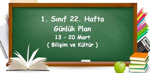 2022-2023 Eğitim Öğretim Yılı 1. Sınıf 22. Hafta Günlük Planlar (13 - 17 Mart)