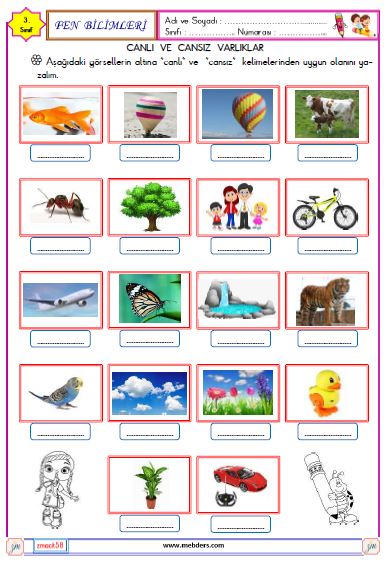 3. Sınıf Fen Bilimleri Canlı ve Cansız Varlıklar Etkinliği