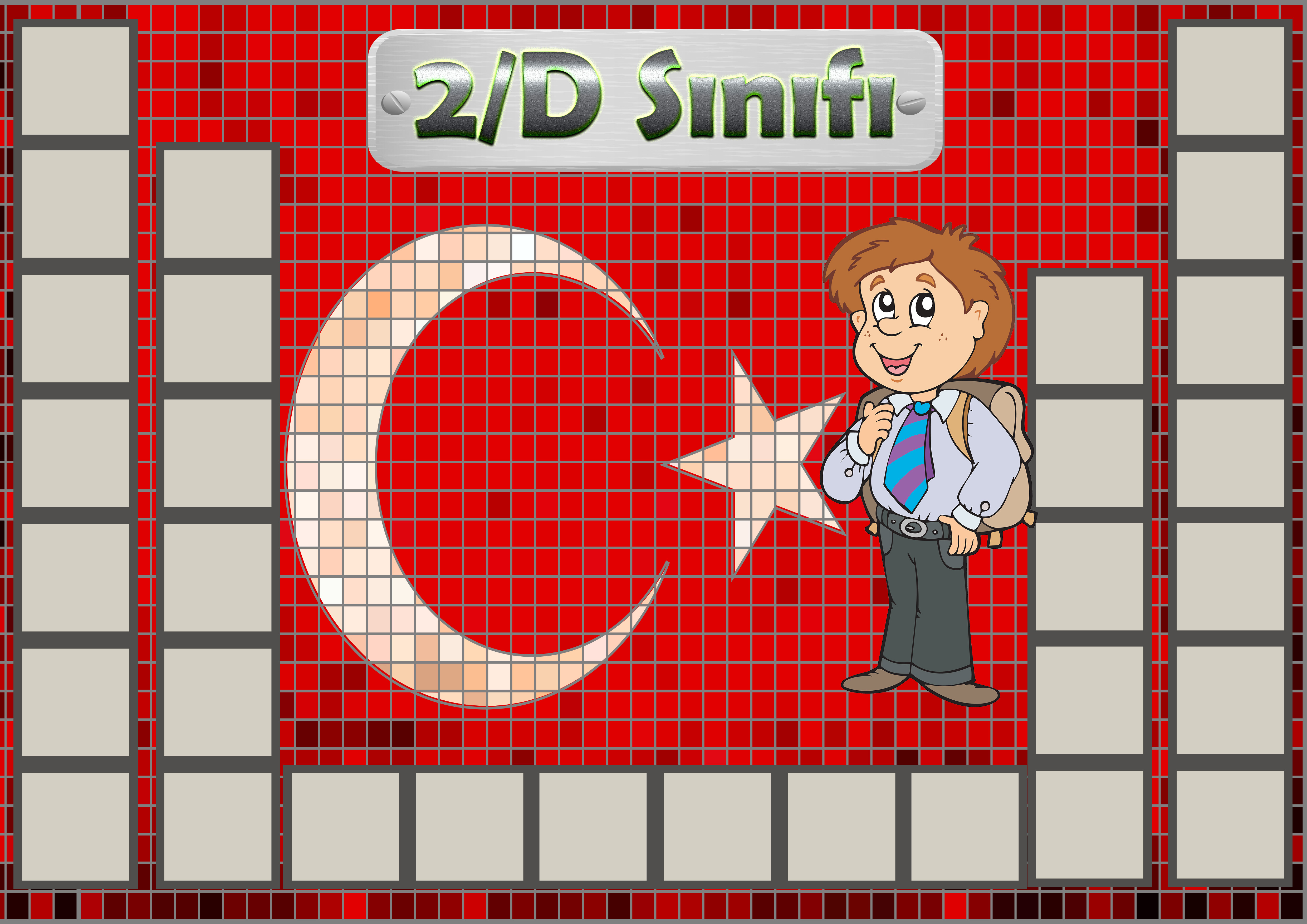 Model 54, 2D şubesi için Türk bayraklı fotoğraf eklemeli kapı süslemesi - 31 öğrenciliktir.. A3 boyutundaki yüksek çözünürlük afiş için dosyayı indiriniz. Kendi öğrenci sayınıza uygun bu model kapı süsü sitemizde yoksa ayrıca istek yapabilirsiniz.