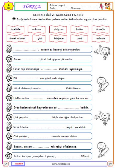 3. Sınıf Türkçe Destekleyici ve Açıklayıcı İfadeler Etkinliği