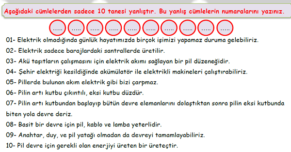 4.Sınıf Fen Bilimleri Basit Elektrik Devre Elemanları-Doğru Yanlış Etkinliği