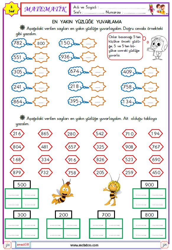 3. Sınıf Matematik En Yakın Yüzlüğe Yuvarlama Etkinliği