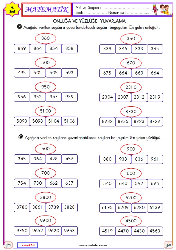 4. Sınıf Matematik Onluğa ve Yüzlüğe Yuvarlama Etkinliği