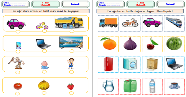 1.Sınıf Matematik Tartma Etkinlikleri-2 (Kes-Yapıştır)