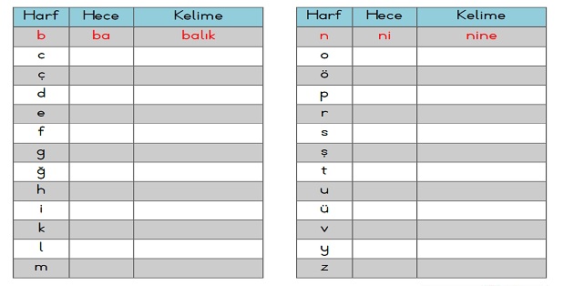 1. Sınıf İlk Okuma Yazma B-b Sesi Hece Kelime Okuma Yazma Çalışmaları