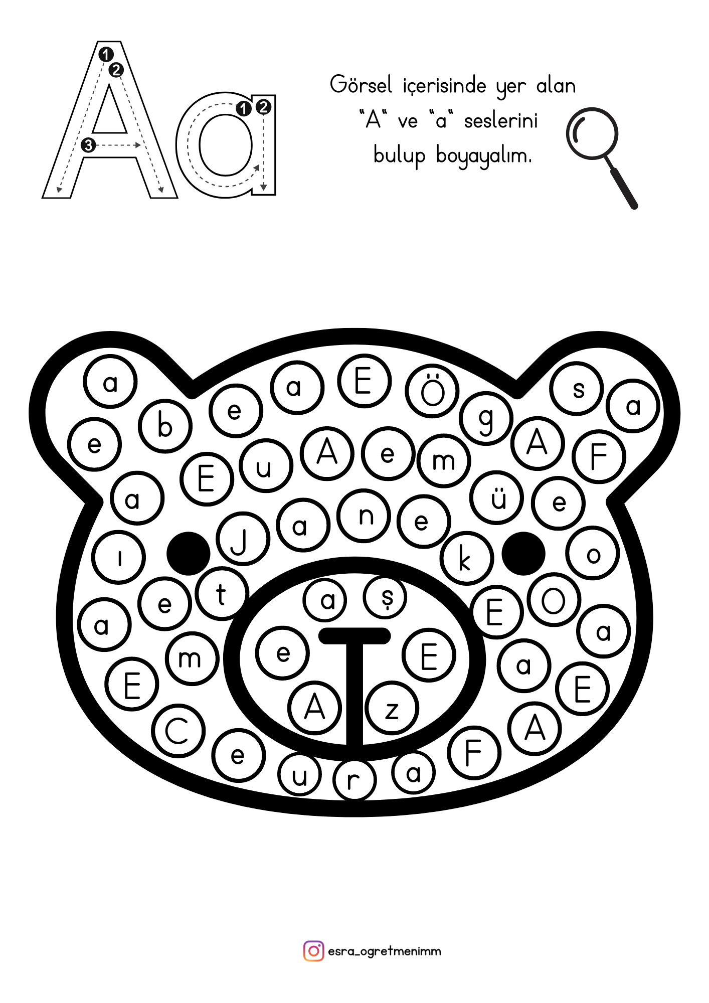 1.Sınıf İlk Okuma Yazma (A-a Sesi) Görseldeki Harfleri Bul Boya-Ayı Görselli