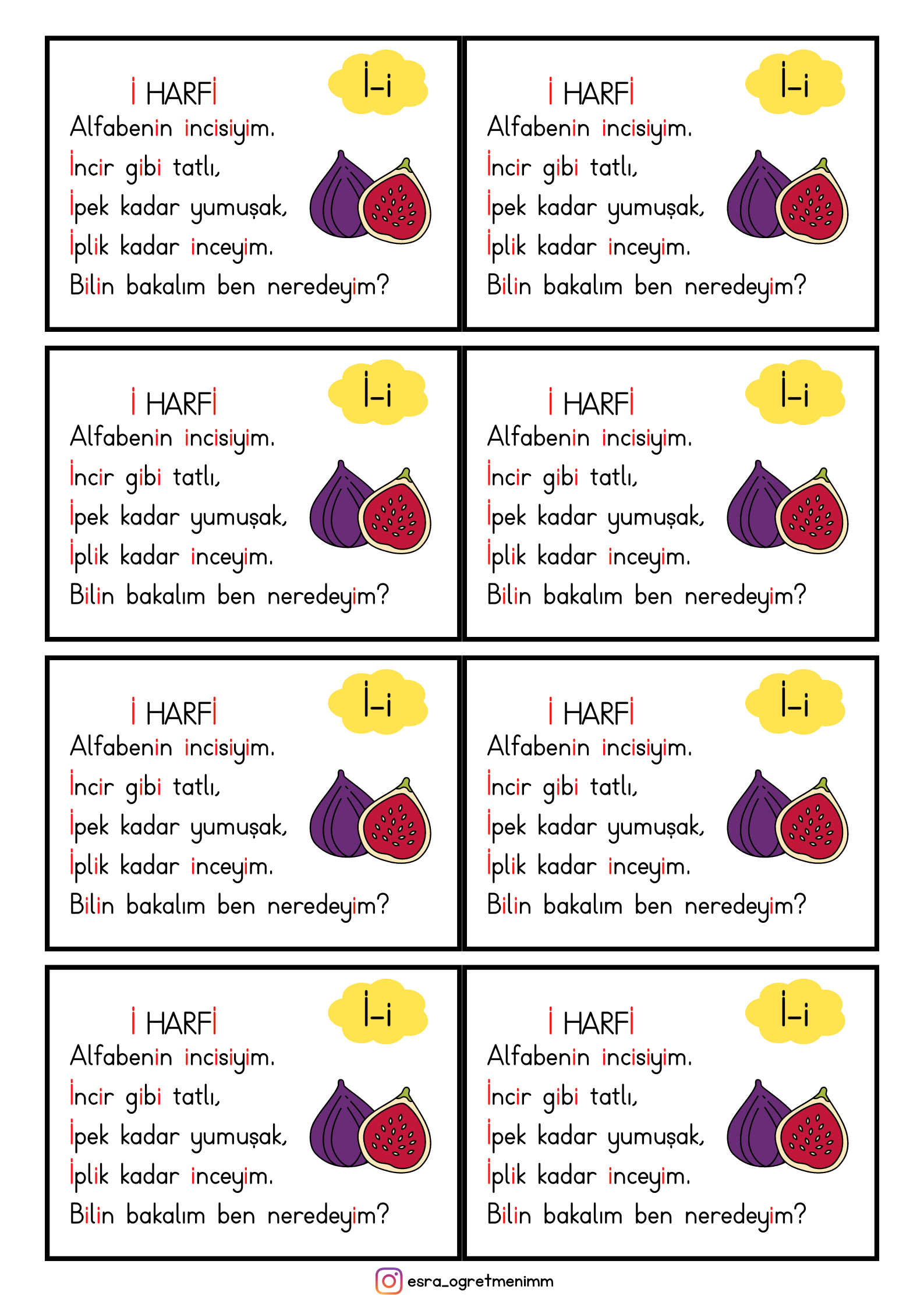 1.Sınıf İlk Okuma Yazma (İ-i Sesi) Tekerleme