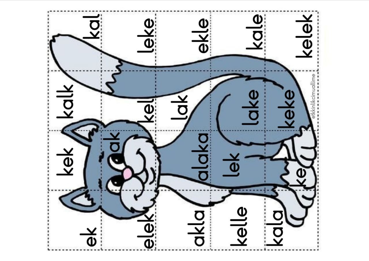1.Sınıf İlk Okuma Yazma (K-k Sesi) Okuma-Kedi Puzzle