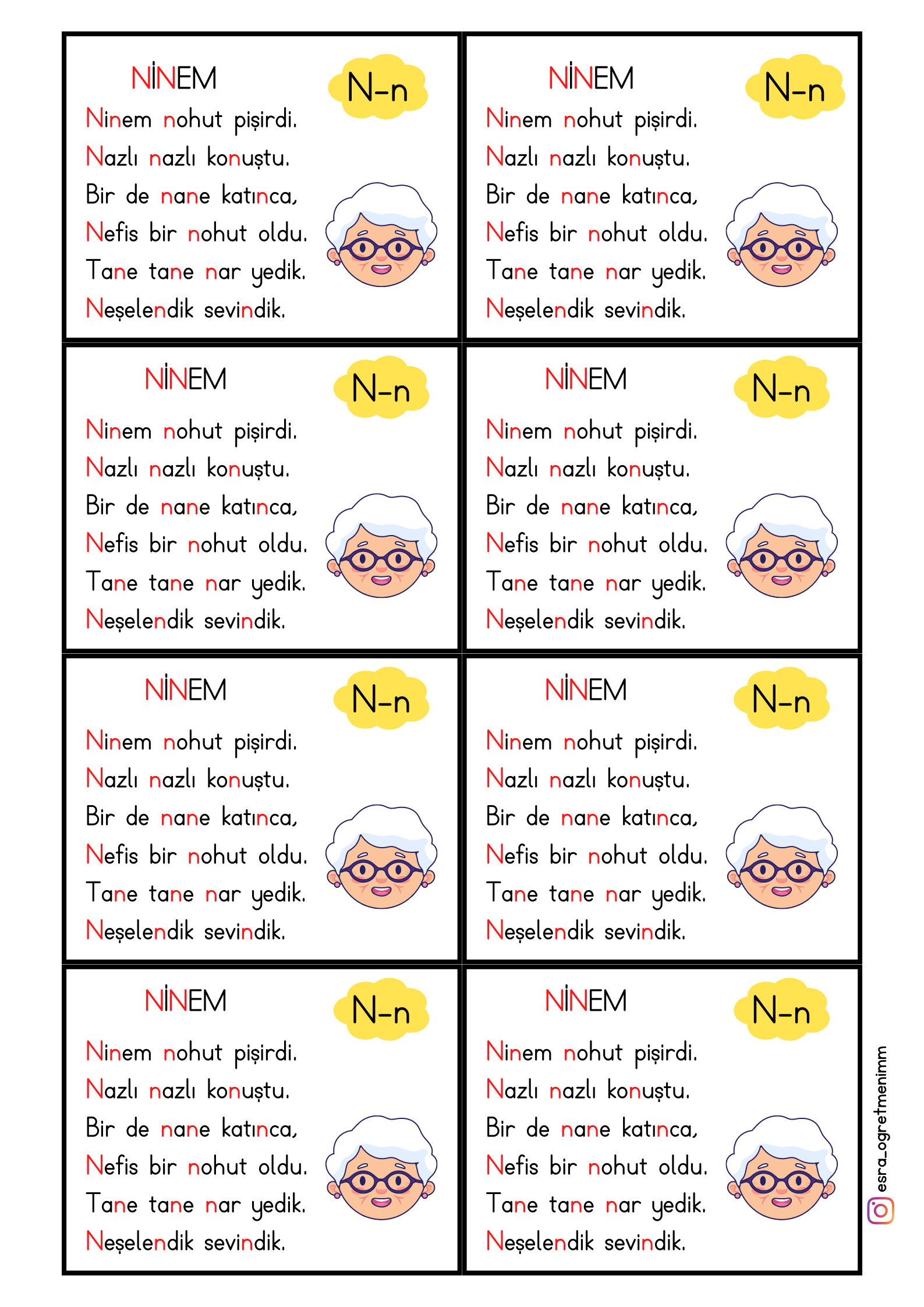1.Sınıf İlk Okuma Yazma (N-n Sesi) Tekerleme
