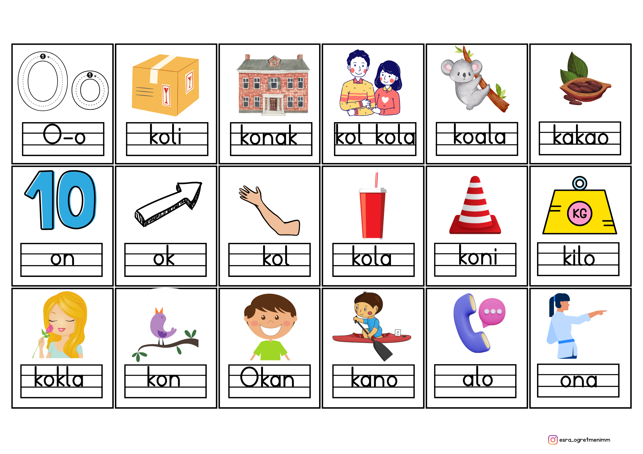 1.Sınıf İlk Okuma Yazma (O-o Sesi) Görselleri-İsimli-Deftere Yapıştırmak İçin