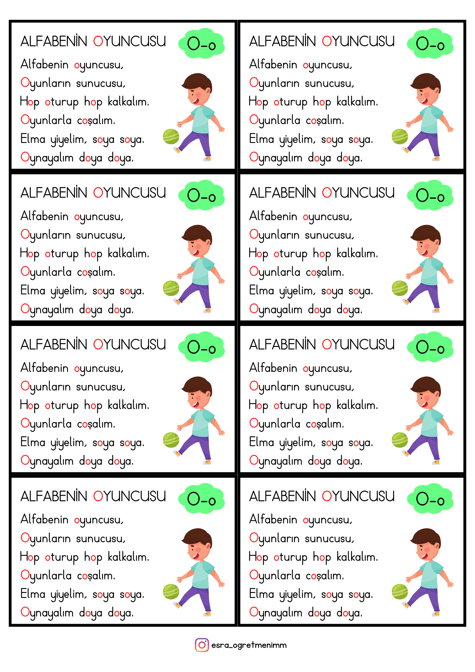 1.Sınıf İlk Okuma Yazma (O-o Sesi) Tekerlemesi