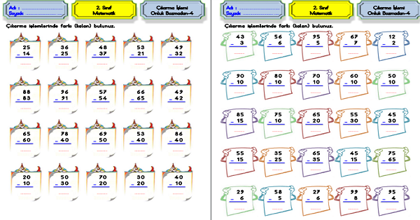 2.Sınıf Matematik Çıkarma İşlemi-Onluk Bozmadan Çıkarma İşlemi Etkinliği-4