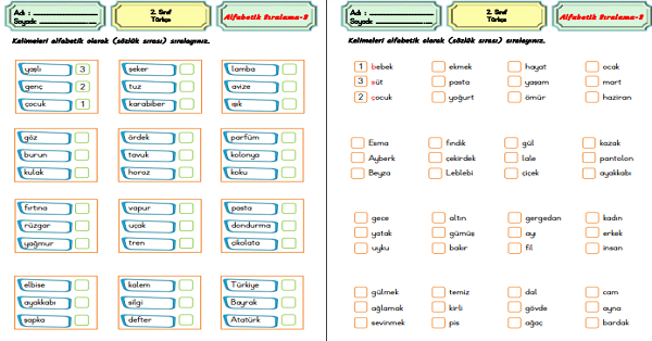 2.Sınıf Türkçe Alfabetik Sıralama Etkinliği-3