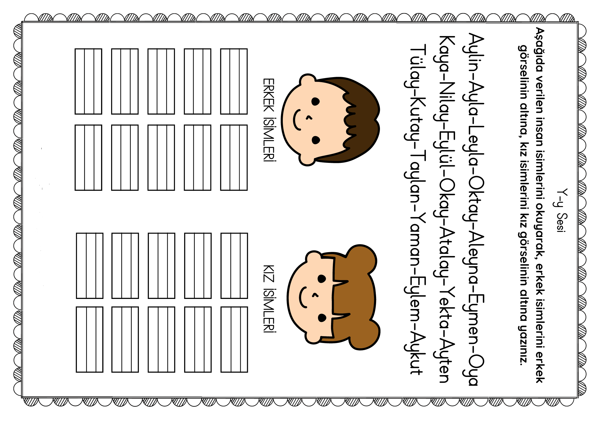 1.Sınıf İlk Okuma Yazma (Y-y Sesi) Kız Ve Erkek İsimlerini Yazma