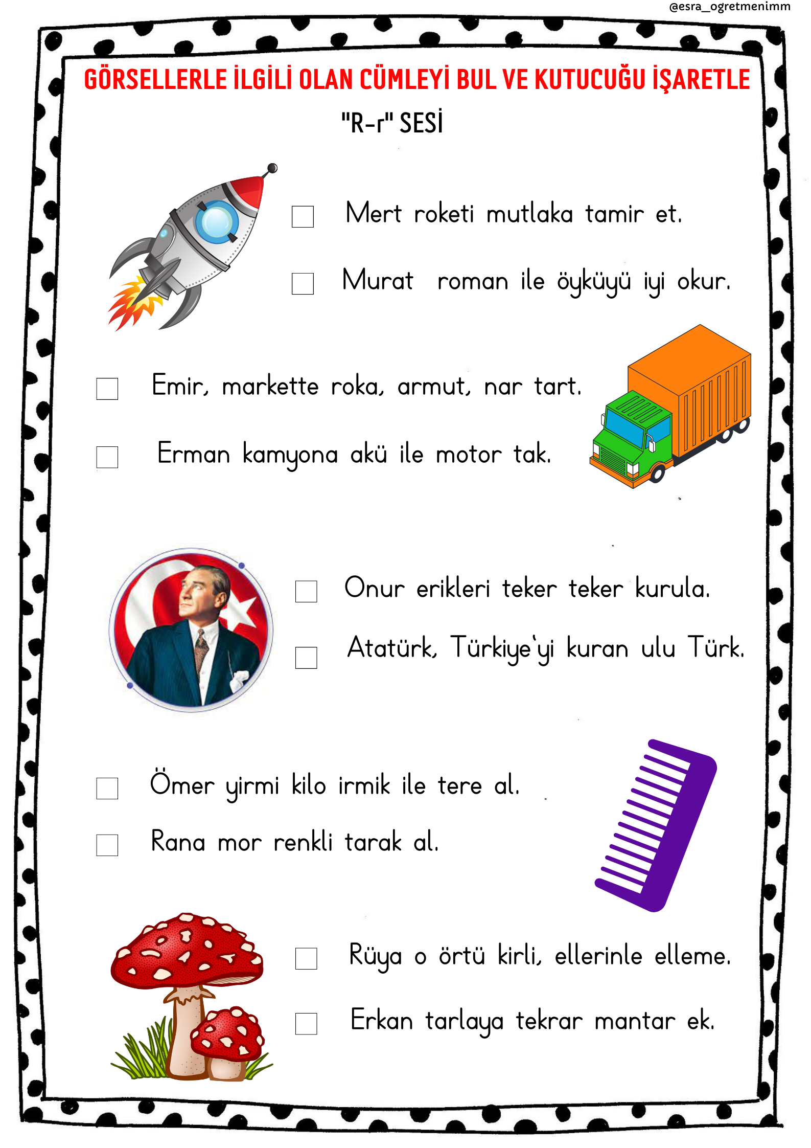 1.Sınıf İlk Okuma Yazma (R-r Sesi) Oku Anla Eşleştir Etkinliği