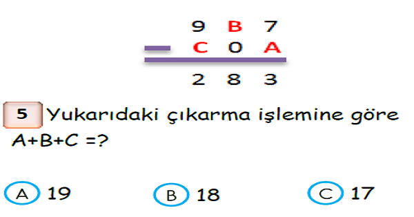 3.Sınıf Matematik Çıkarma İşlemi Yaprak Test-2