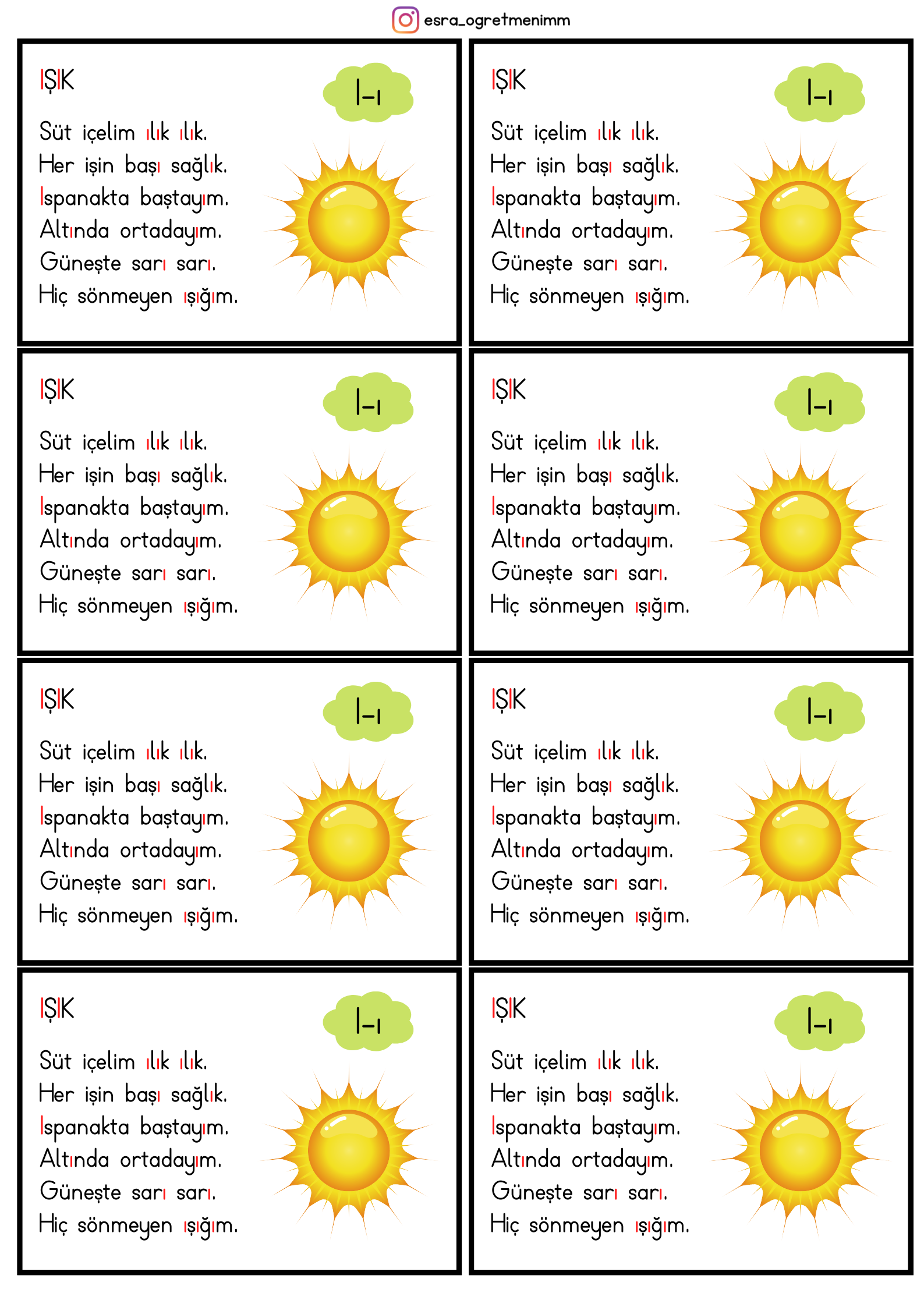1.Sınıf İlk Okuma Yazma (I-ı Sesi) Tekerleme