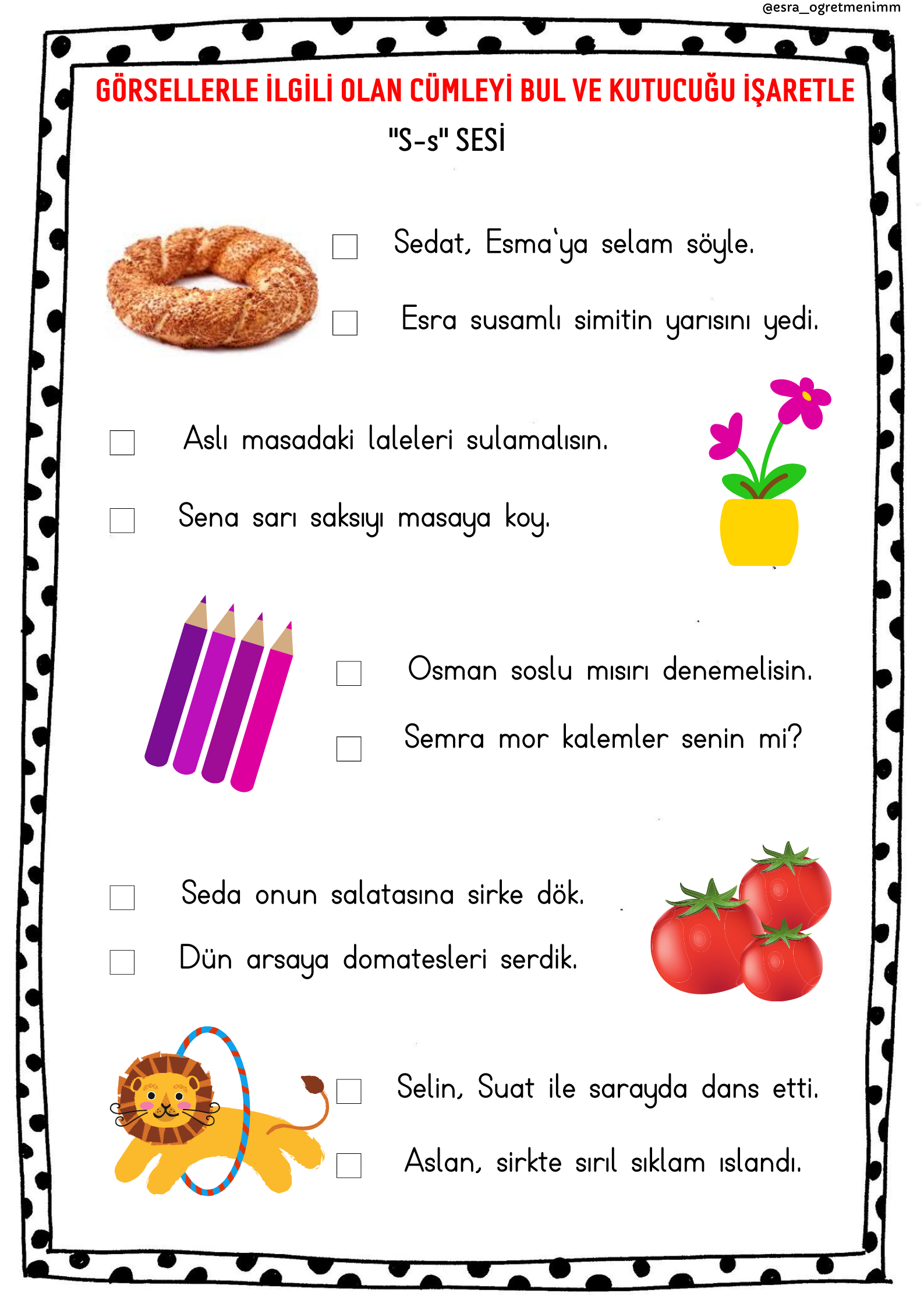 1.Sınıf İlk Okuma Yazma (S-s Sesi) Oku Anla Eşleştir Etkinliği
