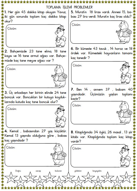 2. Sınıf Matematik Toplama İşlemi Problemleri Etkinliği 5