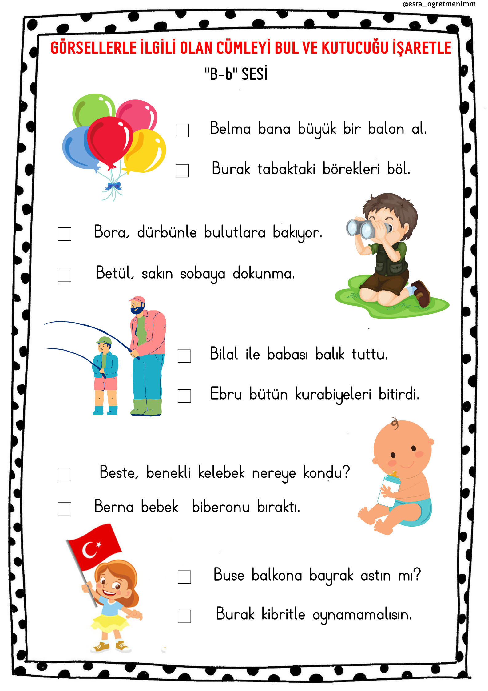 1.Sınıf İlk Okuma Yazma B-b Sesi Oku Anla Eşleştir Etkinliği