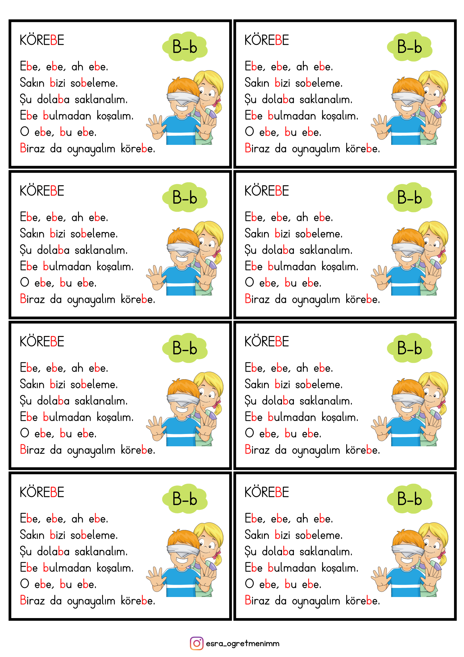 1.Sınıf İlk Okuma Yazma B-b Sesi Tekerleme