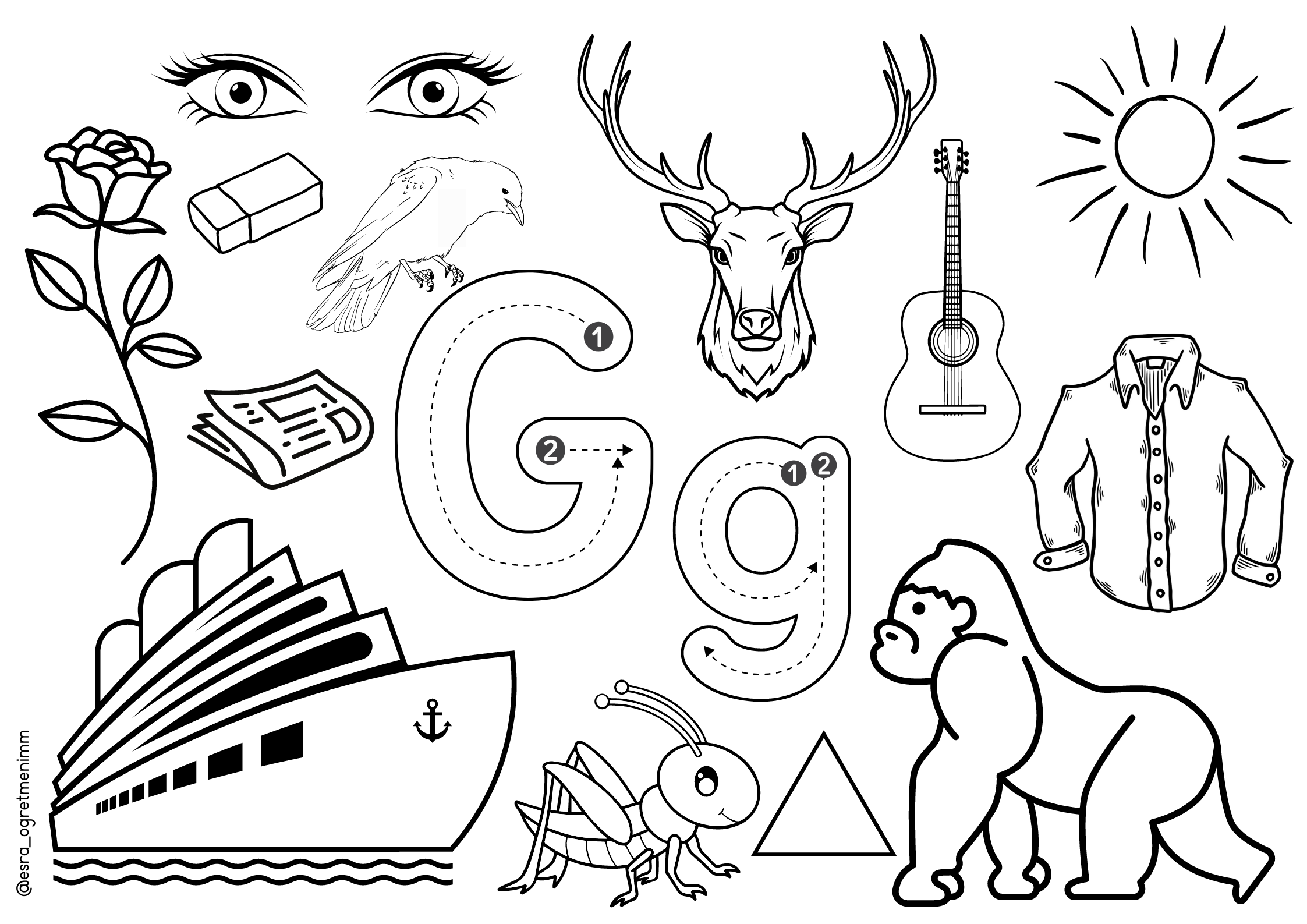 1.Sınıf İlk Okuma Yazma G-g Sesi Görselleri Boyama Sayfası