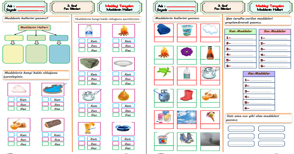 3.Sınıf Fen Bilimleri Maddenin Halleri Etkinlikler (4 Sayfa)