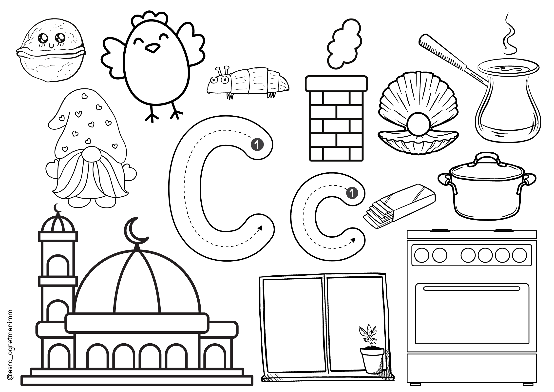 1.Sınıf İlk Okuma Yazma C-c Sesi Görselleri Boyama Sayfası