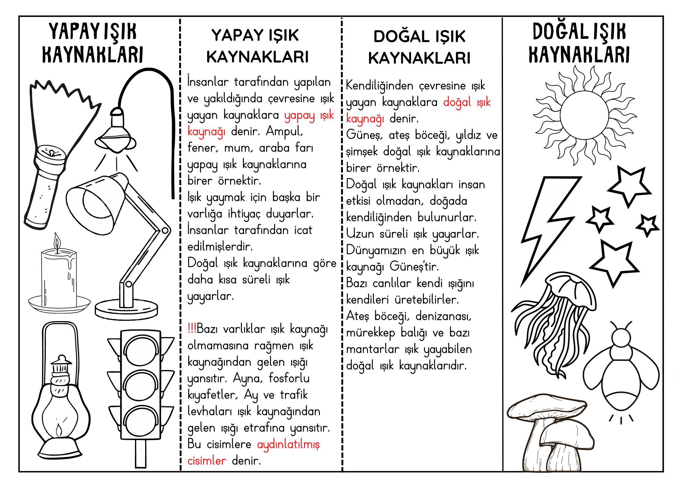 3.Sınıf Fen Bilimleri Doğal ve Yapay Işık Kaynakları Defter Çalışması