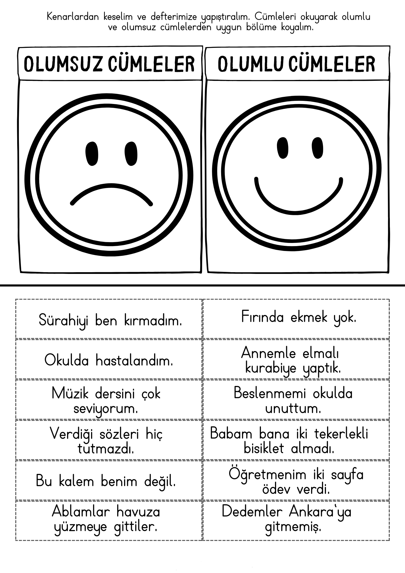 3.Sınıf Türkçe Olumlu Ve Olumsuz Cümleler Defter Çalışması Ve Etkinlik 2