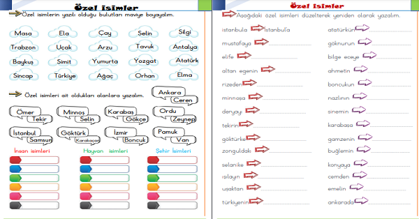 1.Sınıf Türkçe Özel İsimler ve Kesme İşareti Etkinliği