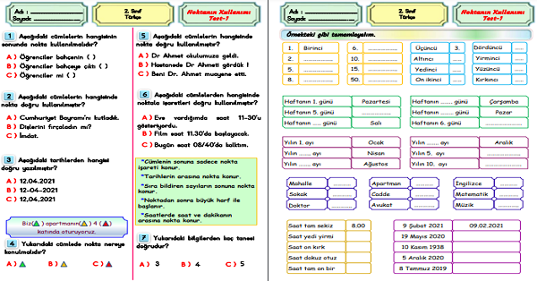 2.Sınıf Türkçe Nokta Etkinliği ve Test-1