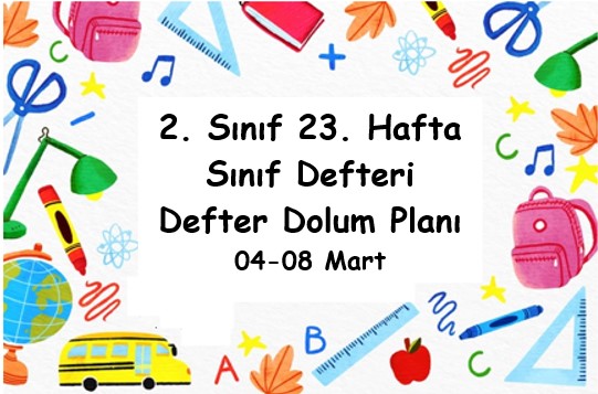 2023-2024 Eğitim Öğretim Yılı 2. Sınıf 23. Hafta (04-08 Mart ) Defter Dolum Planı (Türkçe Bilim ve Kül. Yay.)