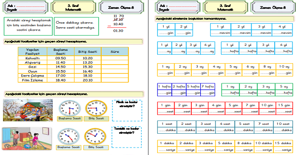 3.Sınıf Matematik Zaman Ölçme (Olayların Oluş Süreleri)-8
