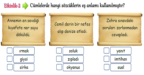 3.Sınıf Türkçe Eş Anlamlı Kelimeler-3