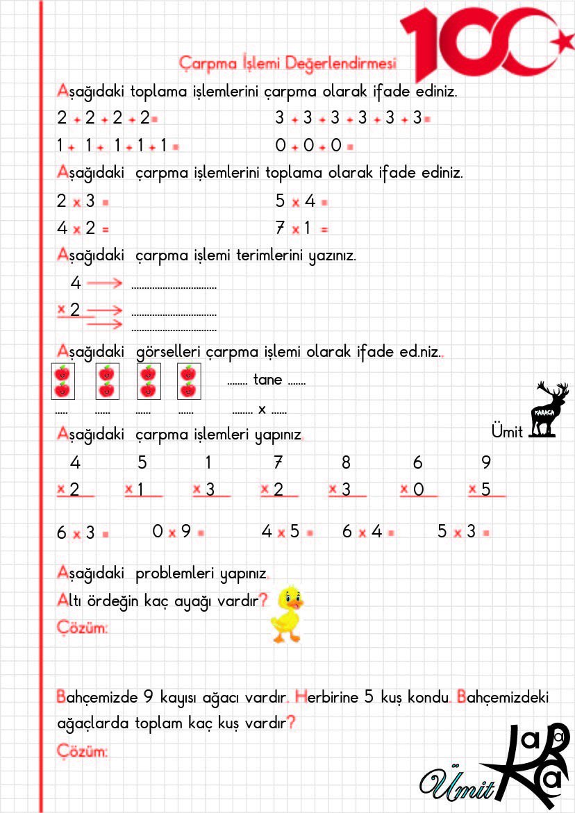 2.Sınıf Matematik Çarpma İşlemi Değerlendirmesi